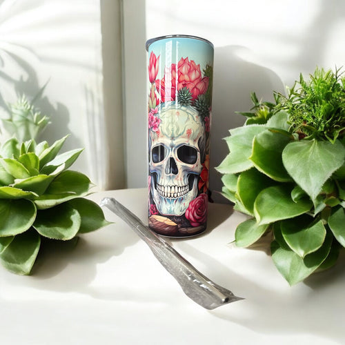 20oz Skull Flower Stainless Steel Skinny Tumbler